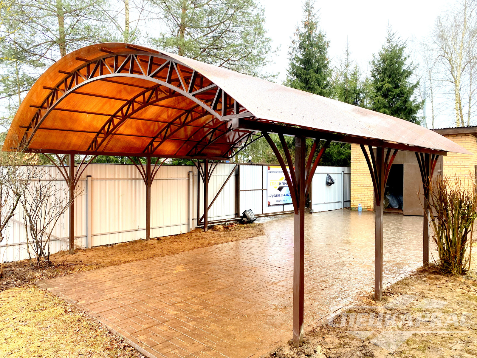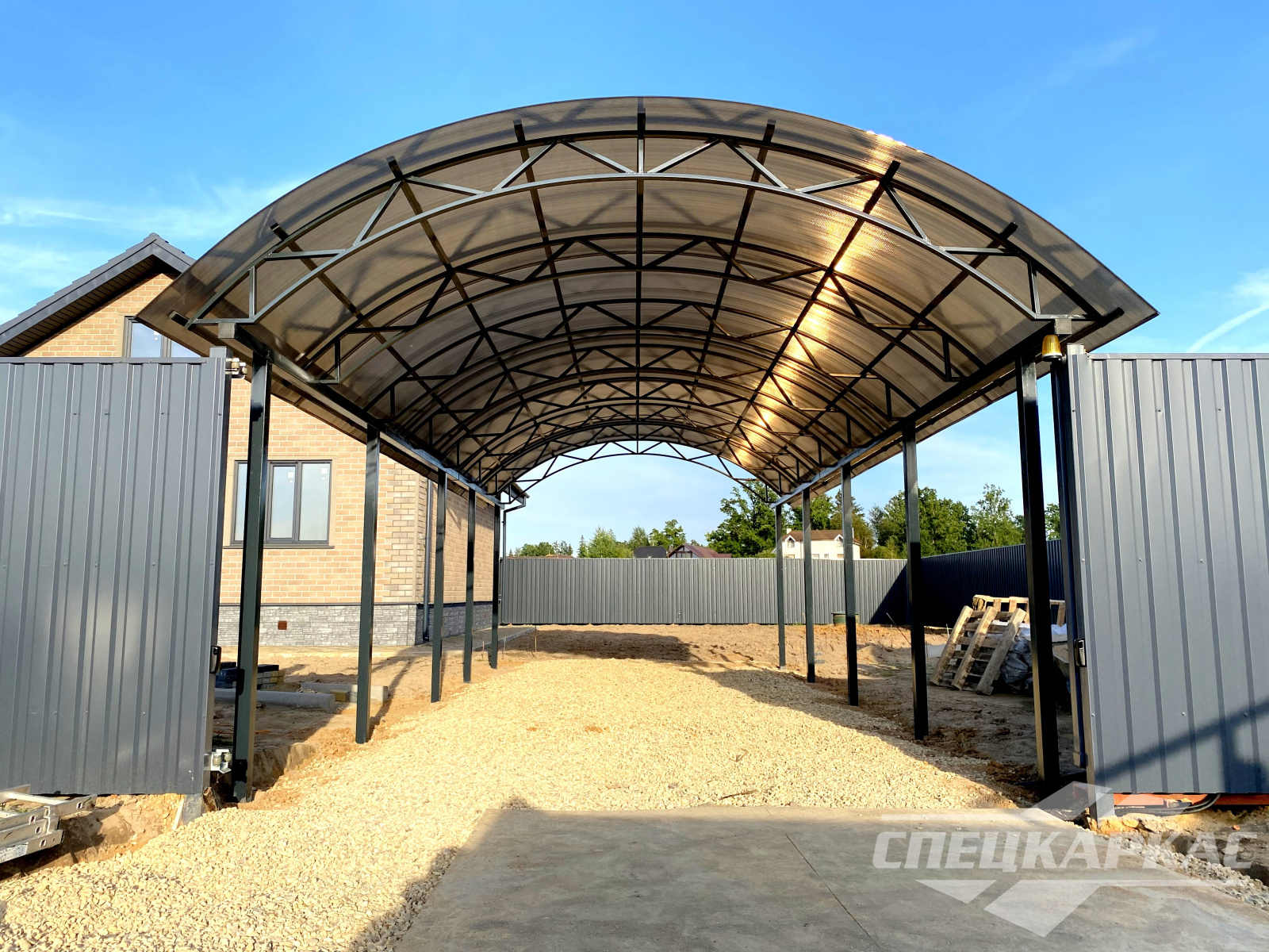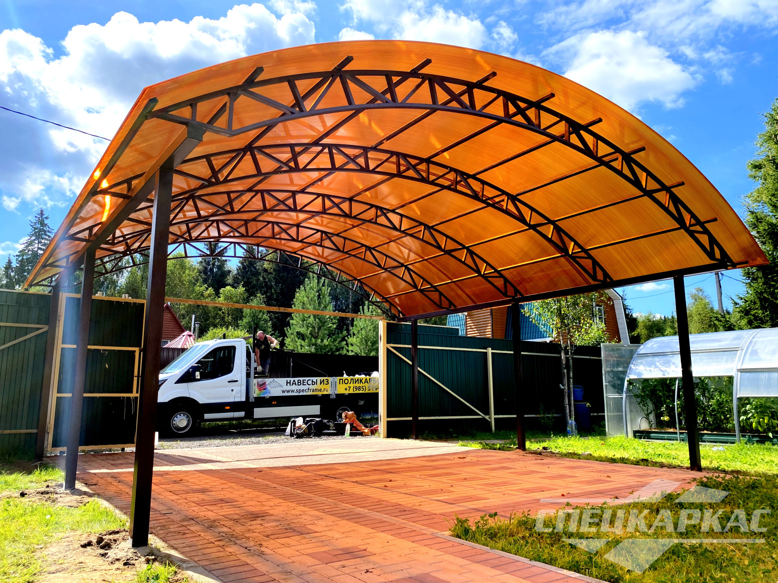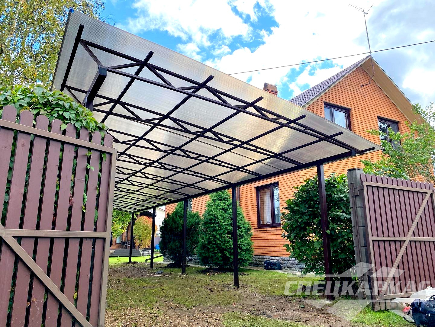 Фото навесов из поликарбоната в Москве: готовые работы от «Спецкаркас»