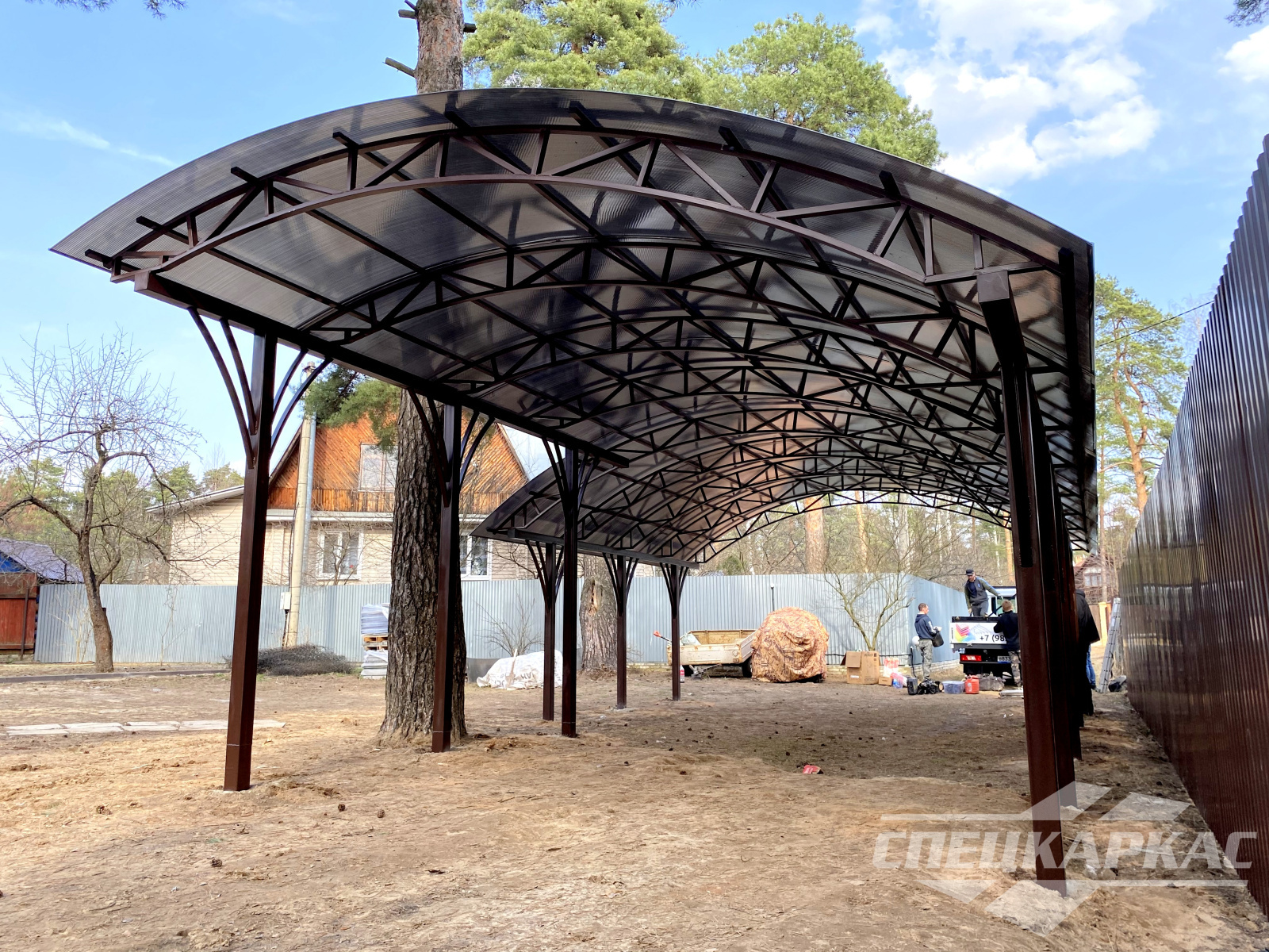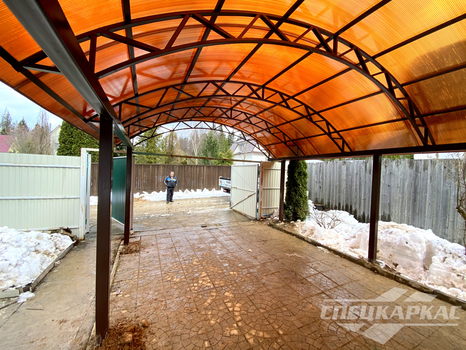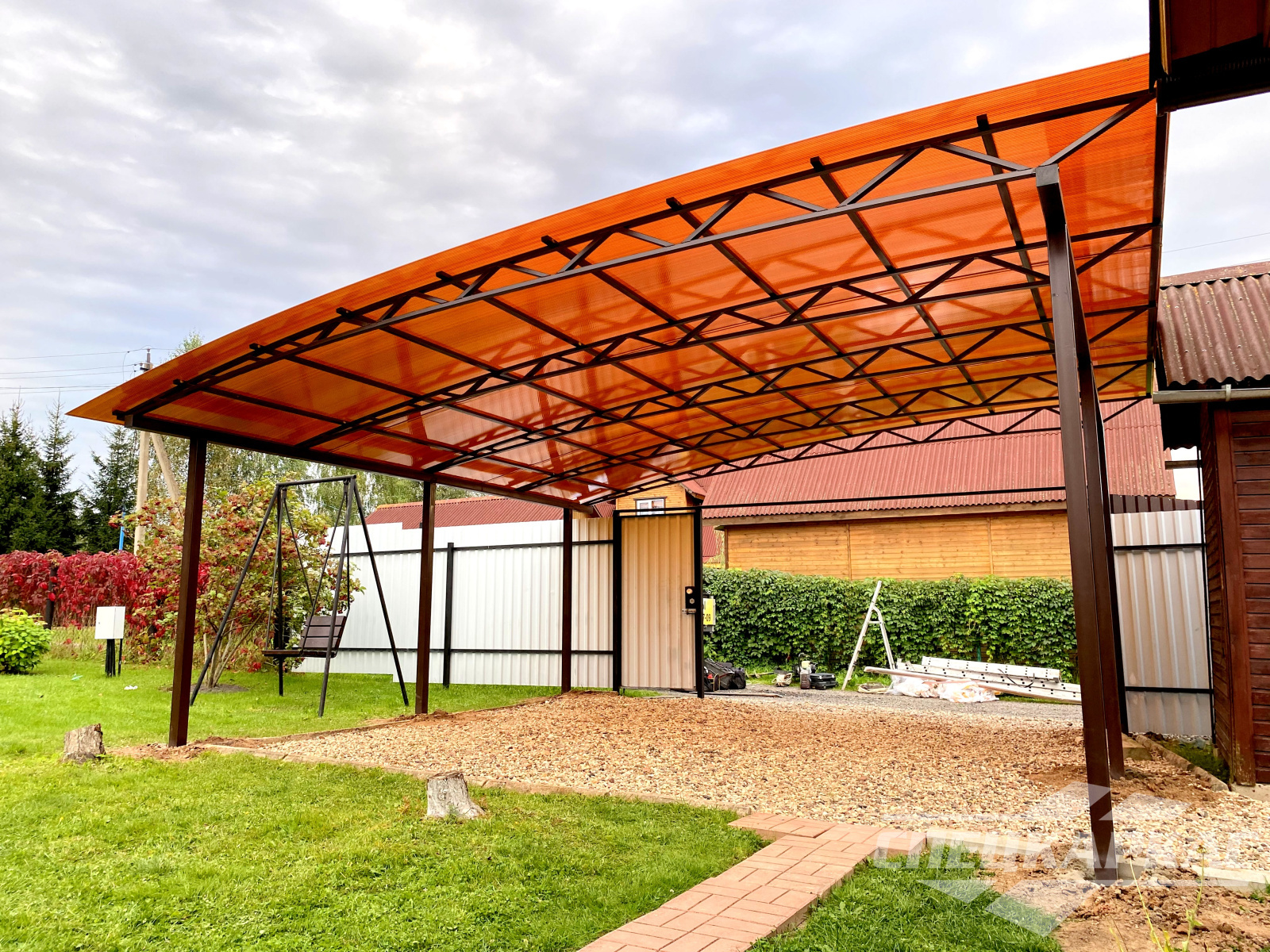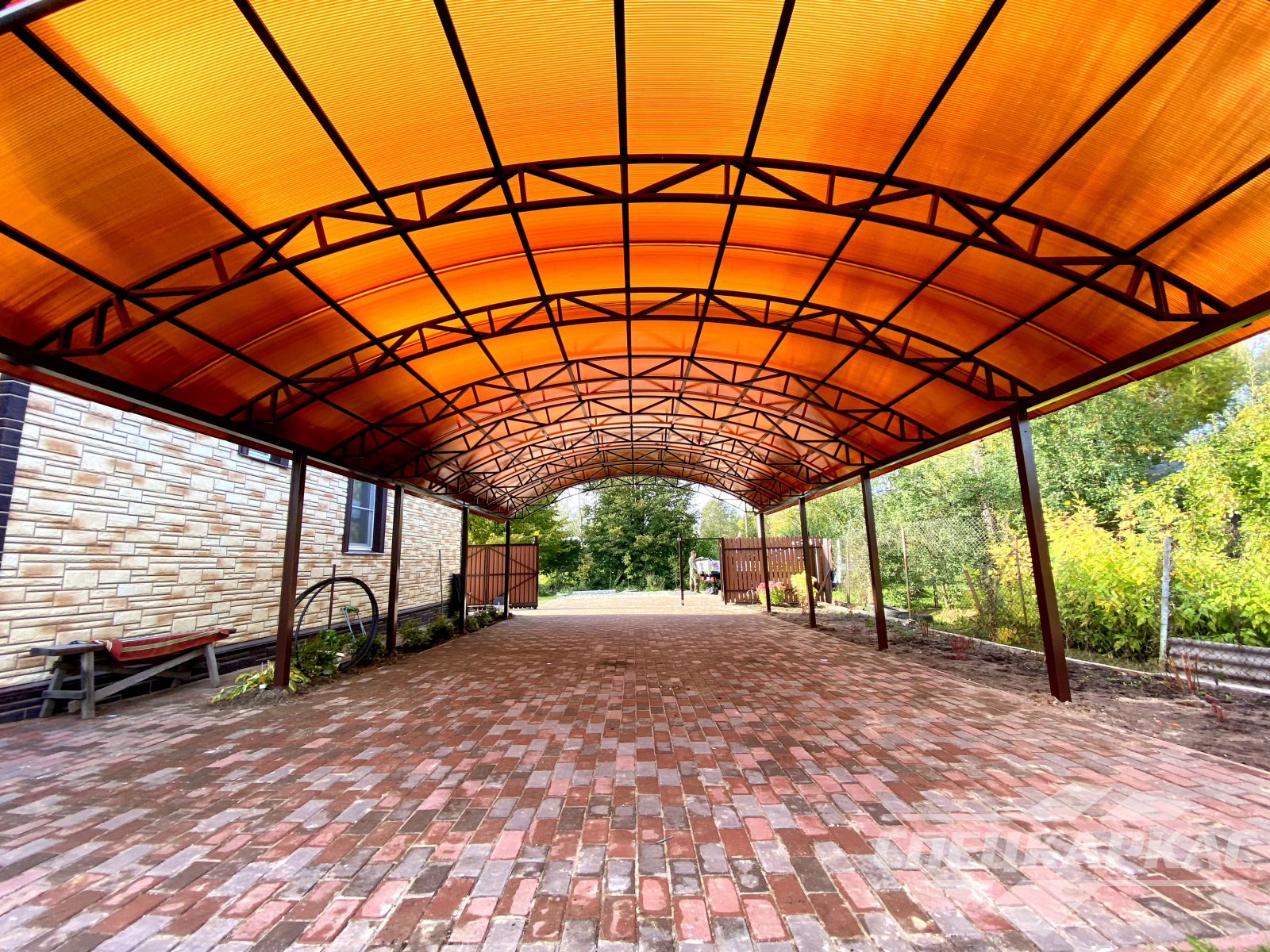 Фото навесов из поликарбоната в Москве: готовые работы от «Спецкаркас»