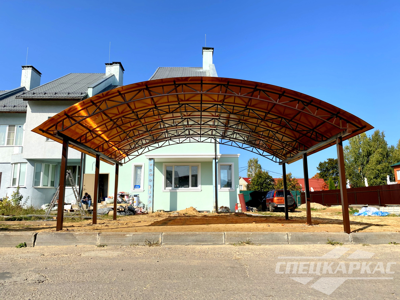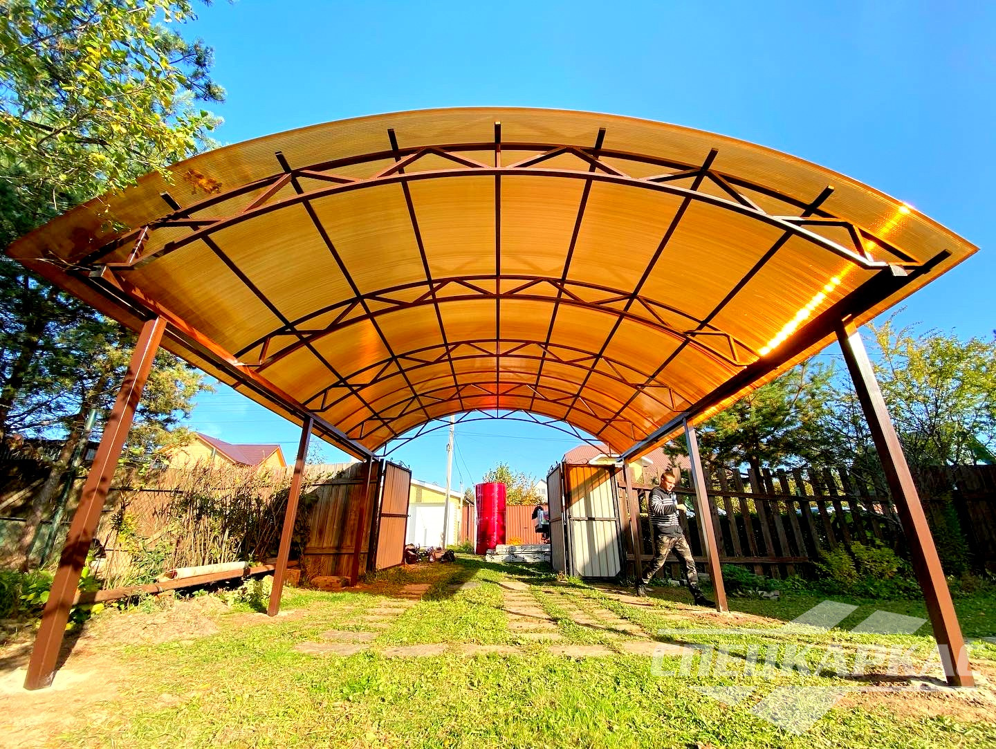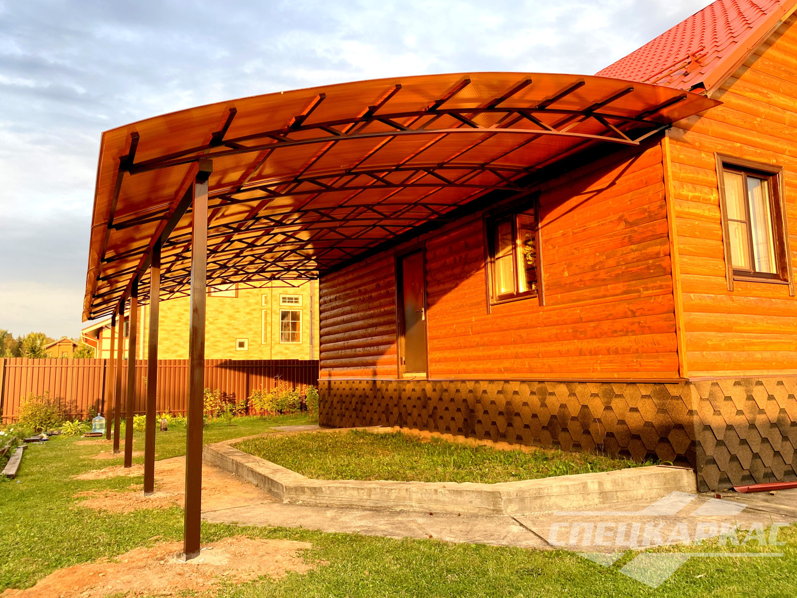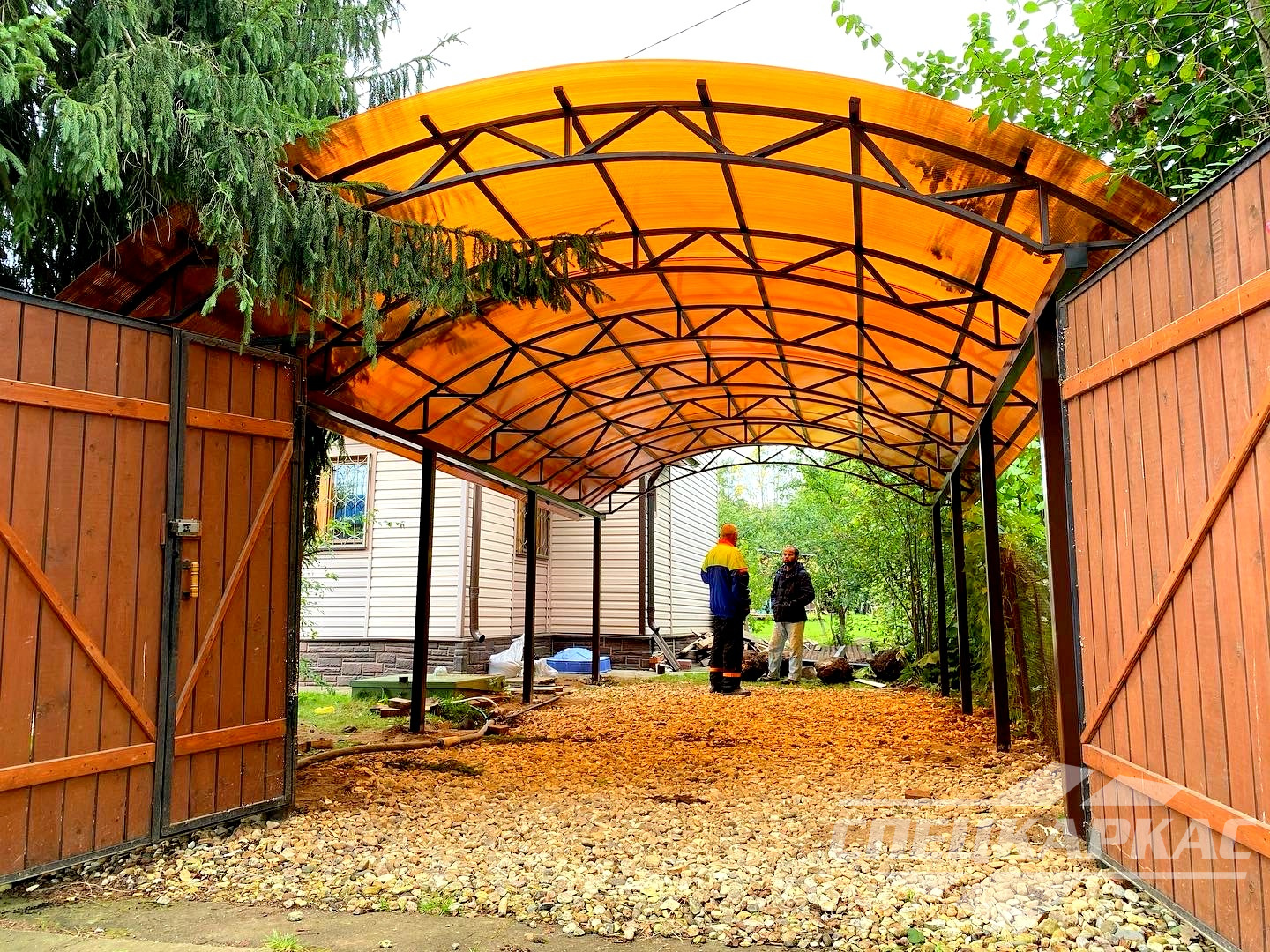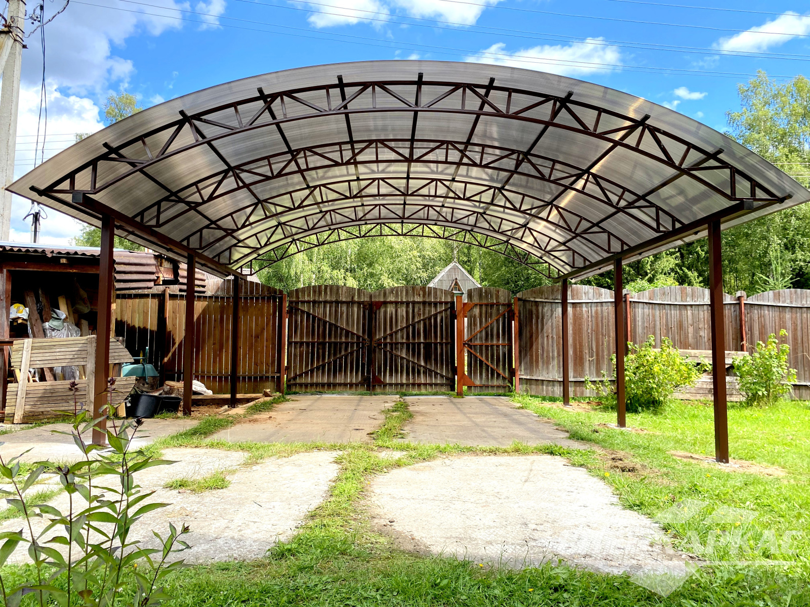 Фото навесов из поликарбоната в Москве: готовые работы от «Спецкаркас»