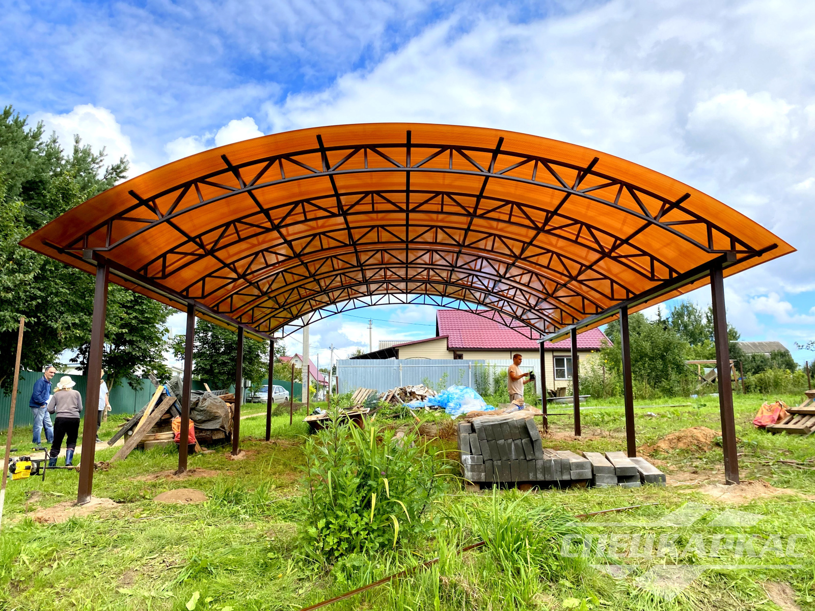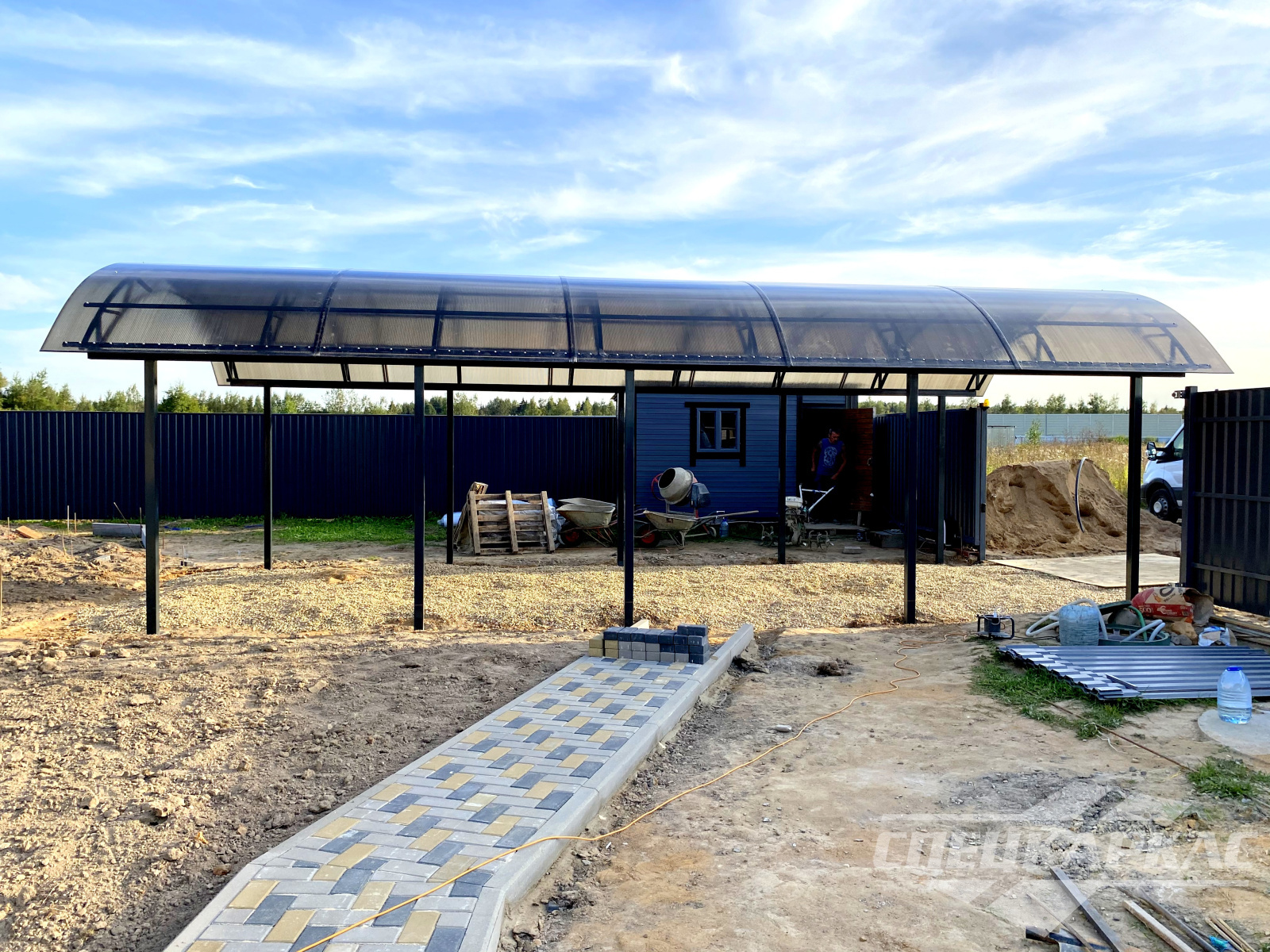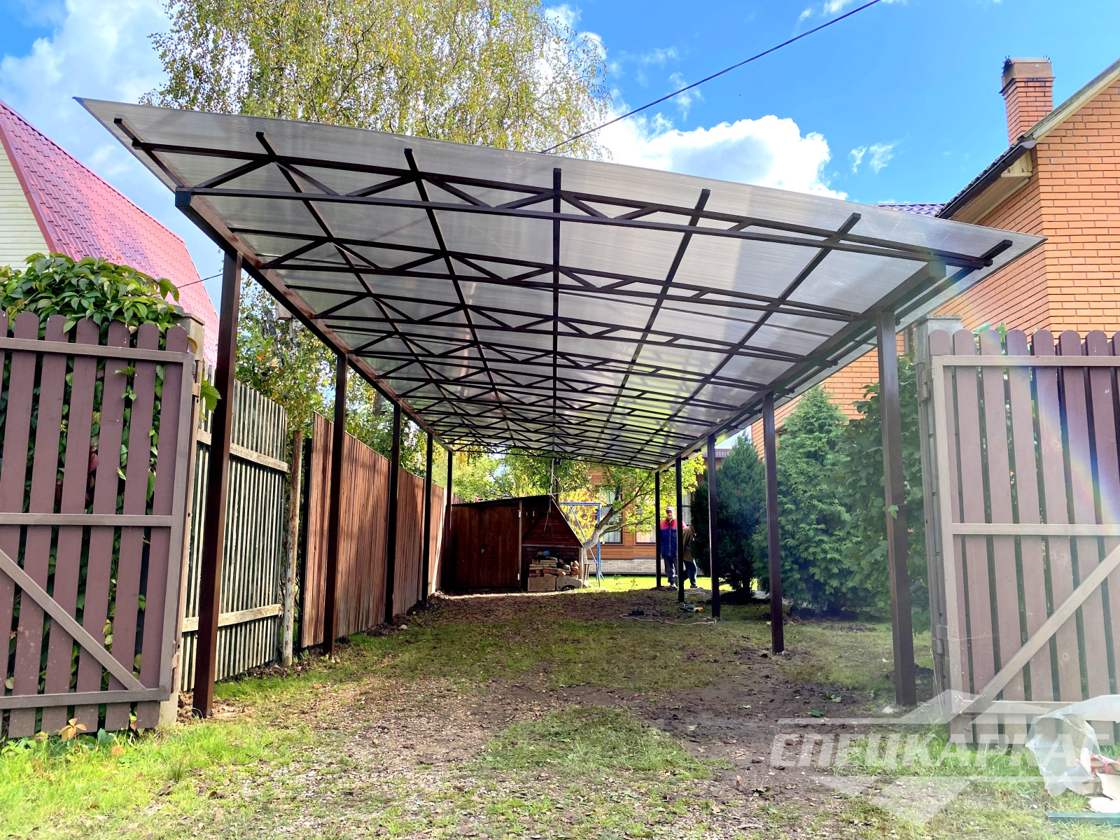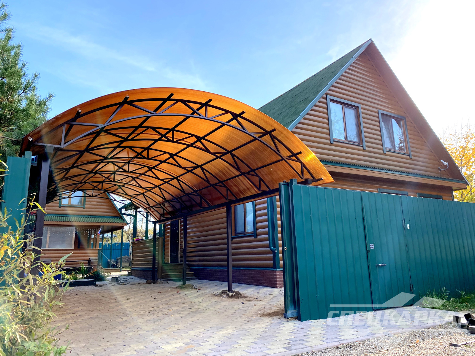 Фото навесов из поликарбоната в Москве: готовые работы от «Спецкаркас»