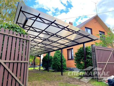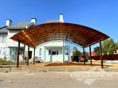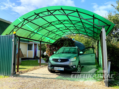 Если удобство эксплуатации навесов из поликарбоната во дворе не полностью зависит от его размеров, то в случае с крытыми автопарковками правильный выбор габаритов сооружения важен для комфортного выезда и заезда, качества защиты авто от непогоды. Размеры объектов довольно сложно определить по фото, но это не критично — «Спецкаркас» проектирует, производит, устанавливает в Подмосковье и Москве навесы из поликарбоната любых размеров и сложности.