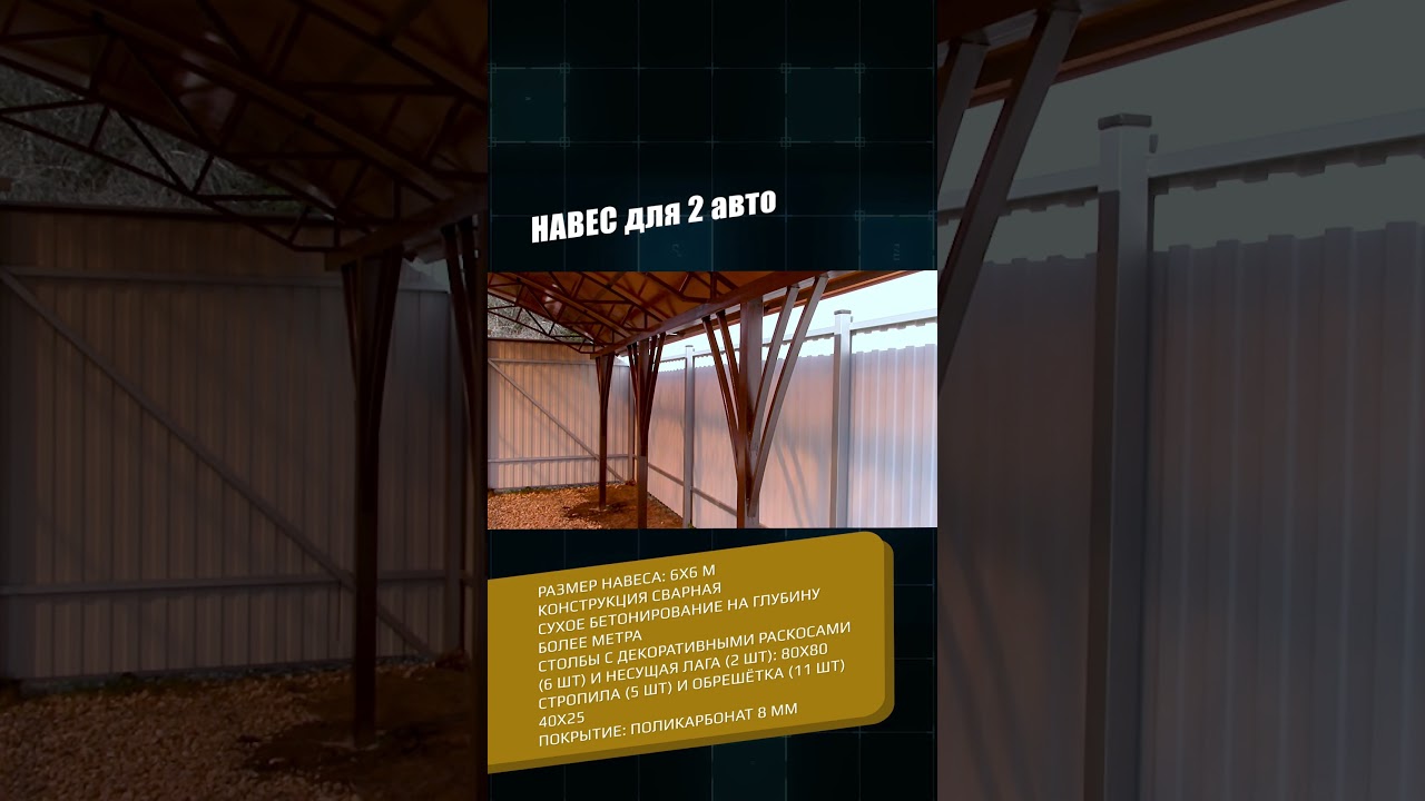Навес из поликарбоната на две машины 6х6 | «Спецкаркас» - изготовление, доставка и монтаж навесов